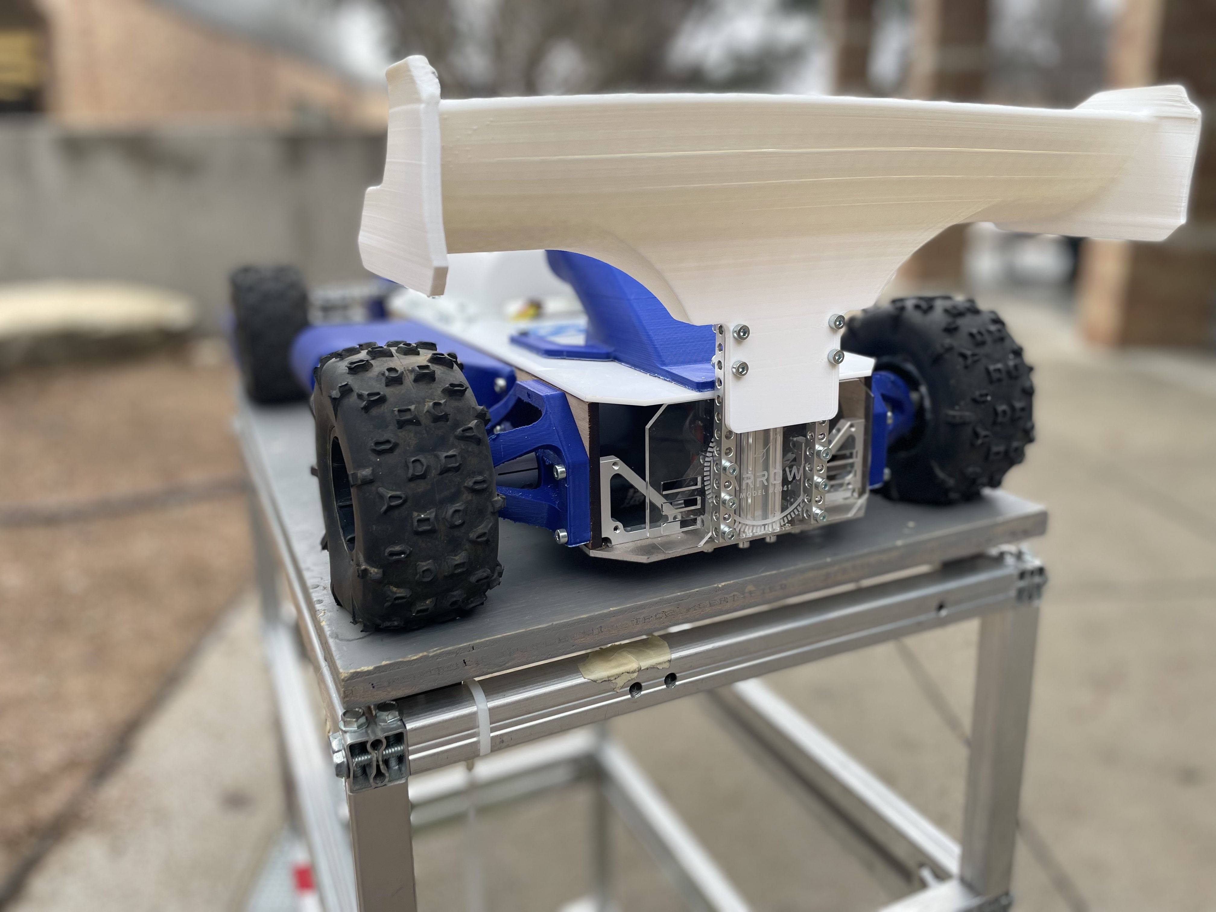 I spent the first semester and first half of the second semester iterating over different designs. My team and I built a total of 4 cars on 4 different chassis platforms. The 4th design was called “Arrow” as it incorporated aerodynamic elements to cool the motors. This was my most successful design, beating out all the previous models in reliability, performance, and aesthetic appeal.